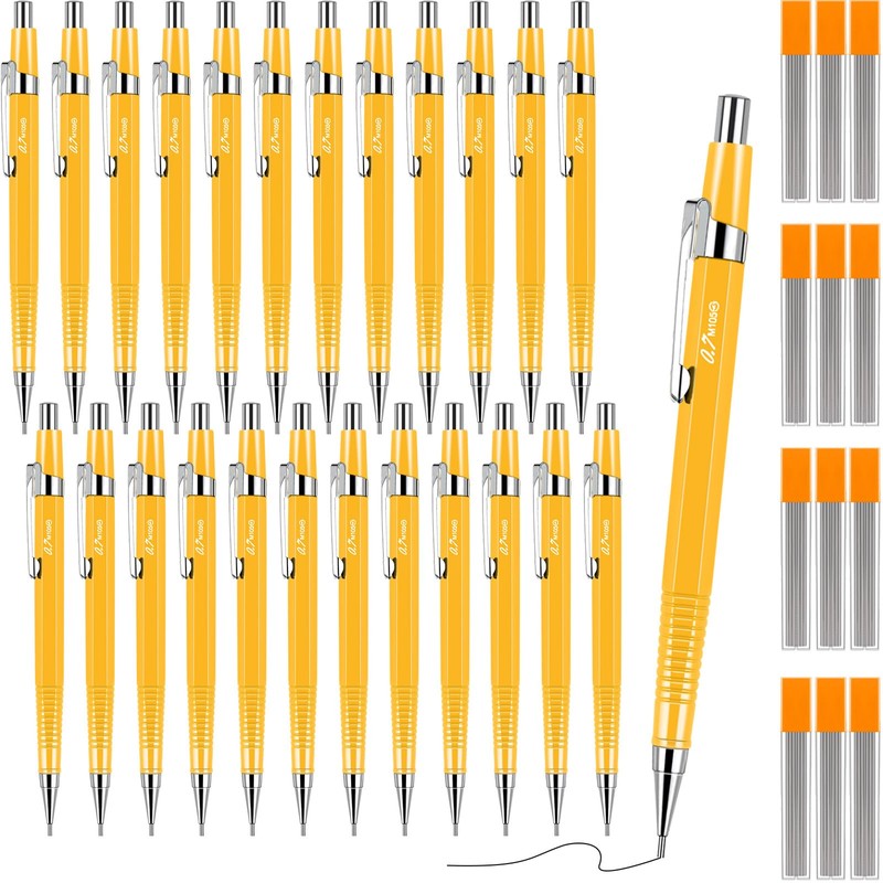 Gueevin 24 Pcs Mechanical Pencil Metal Penpoint Mechanical Pencil Retractable Automatic Drafting Pencils Refills for Writing Drawing Signature(0.9mm,Yellow)