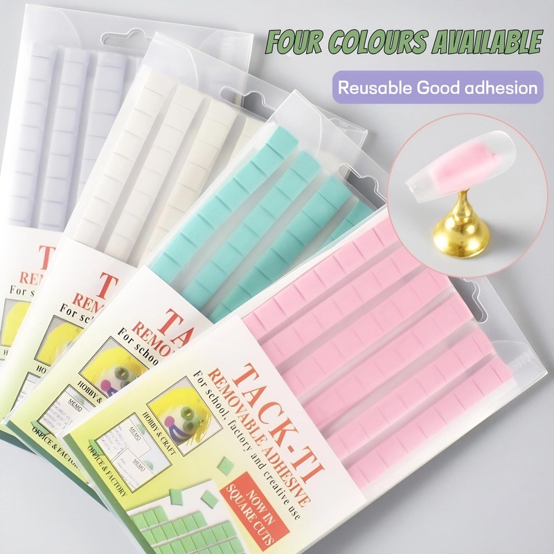 - 💅【Easy to apply and remove】Gently knead the adhesive to make it soft and have a good adhesive effect, then place it on a dry nail surface with pre-cut squares on each packet for easy removal, knead it and press it firmly on a clean, dry place. To remove: simply roll off the surface.