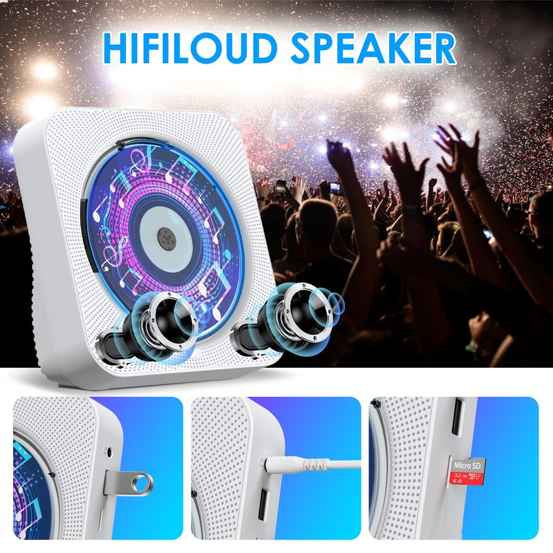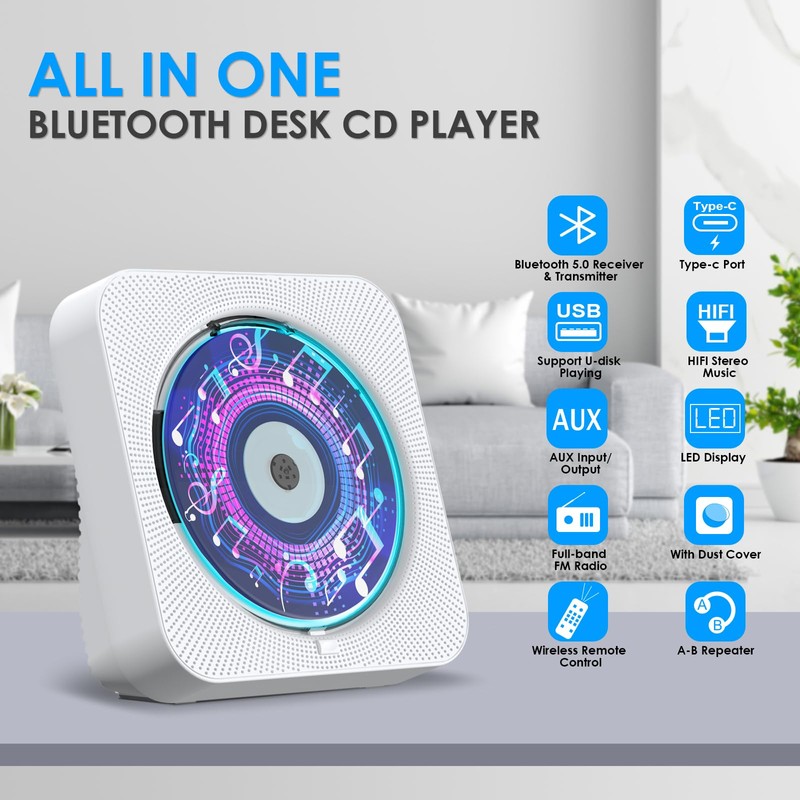 • CD Player with Dual Mode Bluetooth: The CD player is compatible with CD, CD-R, CD-RW, MP3, and WMA audio formats, includes a dust cover to prevent any performance issues caused by dust accumulation. Additionally, it has a dual mode Bluetooth function, built-in Bluetooth 5.1, offers a wider signal range and faster connection and transmission speeds, allowing for easy connection to phones, tablets, and headphones via Bluetooth transmitter and receiver.