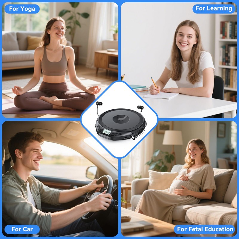 - Widely Occasion: The compact and portable design makes this corded powered CD player device an ideal addition to any home or office, the built-in ASP (Anti-Shock Protection) system ensures that your CD playback remains smooth and uninterrupted, even in the presence of vibrations. suitable for Yoga,training,sports,studying or car leisure time