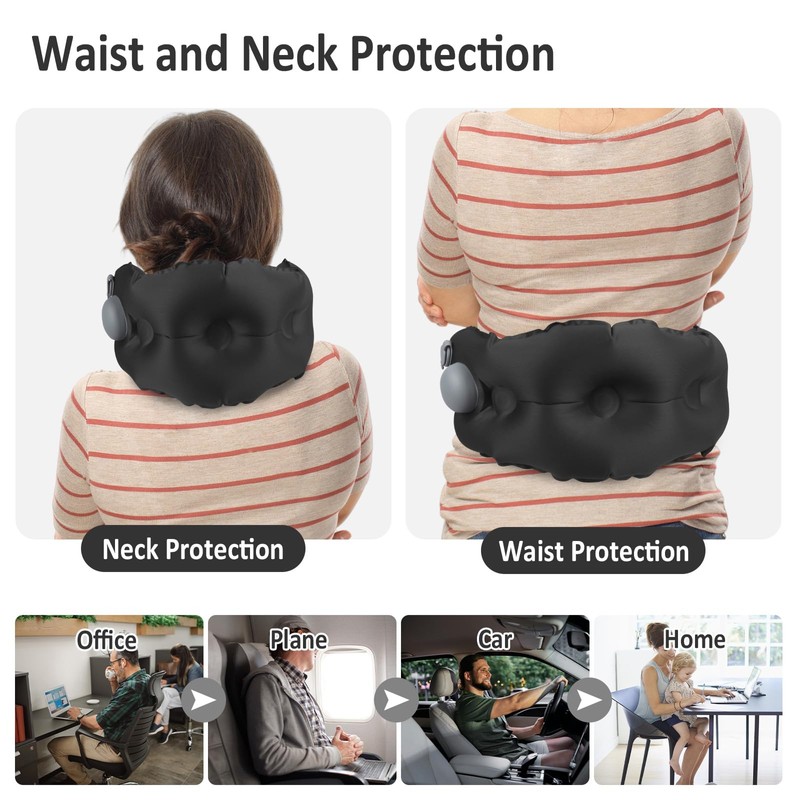 - Ergonomic Lumbar Support: This inflatable lumbar pillow offers firm back support during flights, long car rides, or at your office chair, reducing lower back pressand improving posture wherever you go.