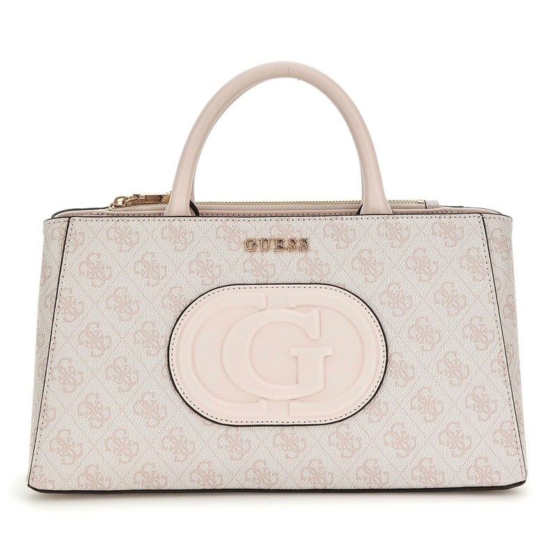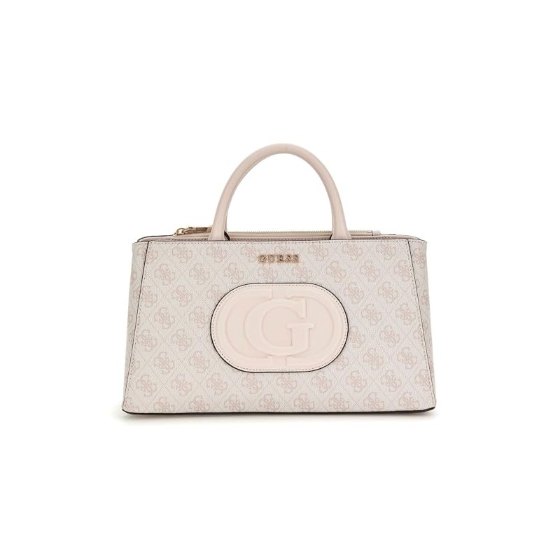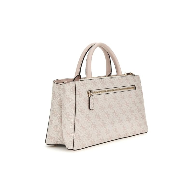 GUESS Eco Mietta Small Society Satchel Dove Logo/Stone, Dove logo / stone