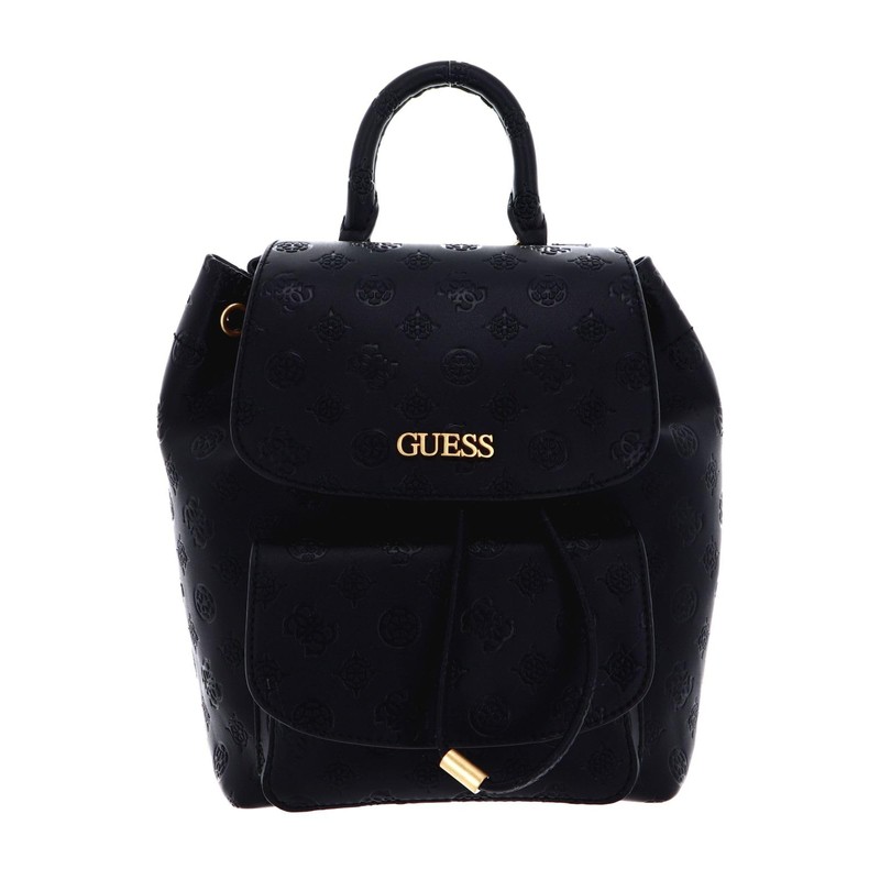 - With this Guess backpack on your back, you will attract everyone's attention. The design impresses with a logo pattern and a simple look. So this favourite is easy to combine. Inside, all everyday belongings are well stored. Dimensions: 22 x 26 x 12 cm