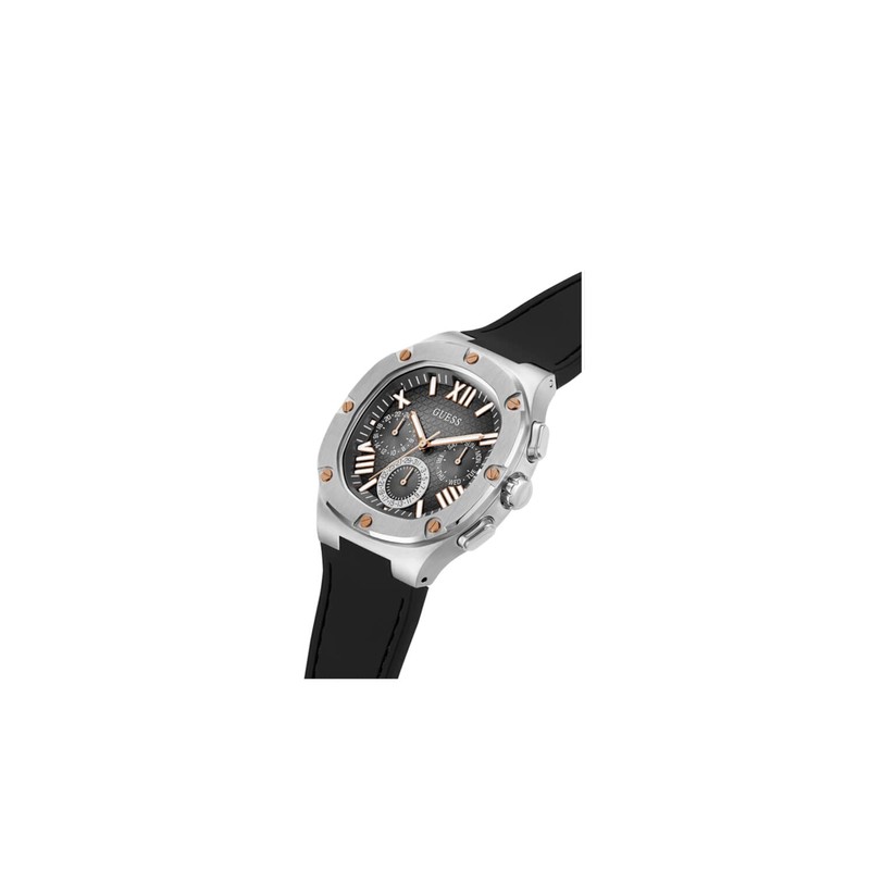 GUESS Men's 42mm Watch - Black Strap Gunmetal Dial Silver Tone Case