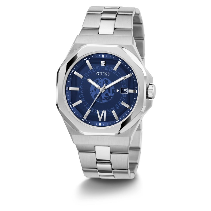 GUESS Men's 42mm Watch - Silver Tone Strap Blue Dial Silver Tone Case