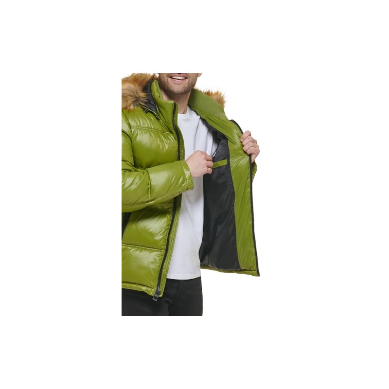 Guess Men's Warm Rain Resistant Puffer, Moss, Large