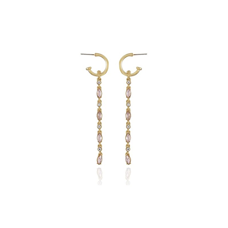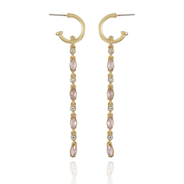 GUESS Open Huggie Hoop Pink Stone Linear Earrings