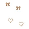 GUESS SET OF 2 GUESS GOLD TONE HEARTS+PEACH RHINESTONE & BOWS WITH PEARL STUD EARRINGS
