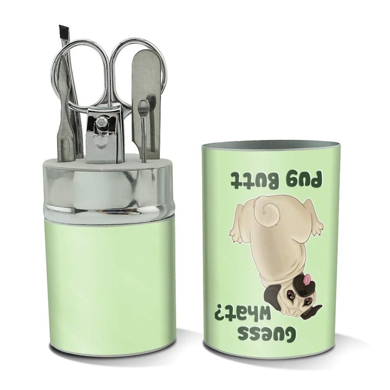 Guess What? Pug Butt Stainless Steel Manicure Pedicure Grooming Beauty Care Travel Kit