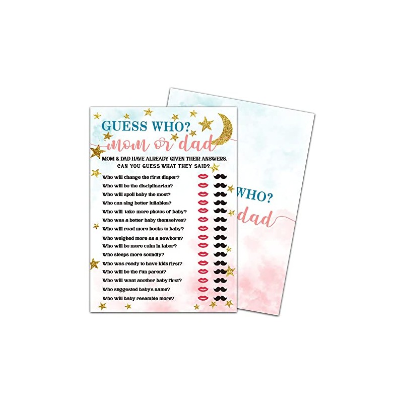 Guess Who? Mom Or Dad Baby Shower Game, Gender Reveal Party Supplies,Moon & Stars Design Party Decorations,– 30 Game Cards (bb010-yx06)
