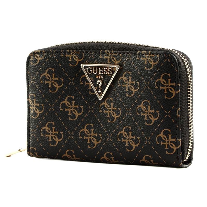 GUESS Women's Laurel SLG Medium Zip Around Bag, Brown logo, Standard size
