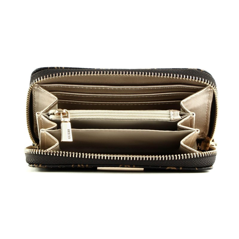 GUESS Women's Laurel SLG Medium Zip Around Bag, Brown logo, Standard size