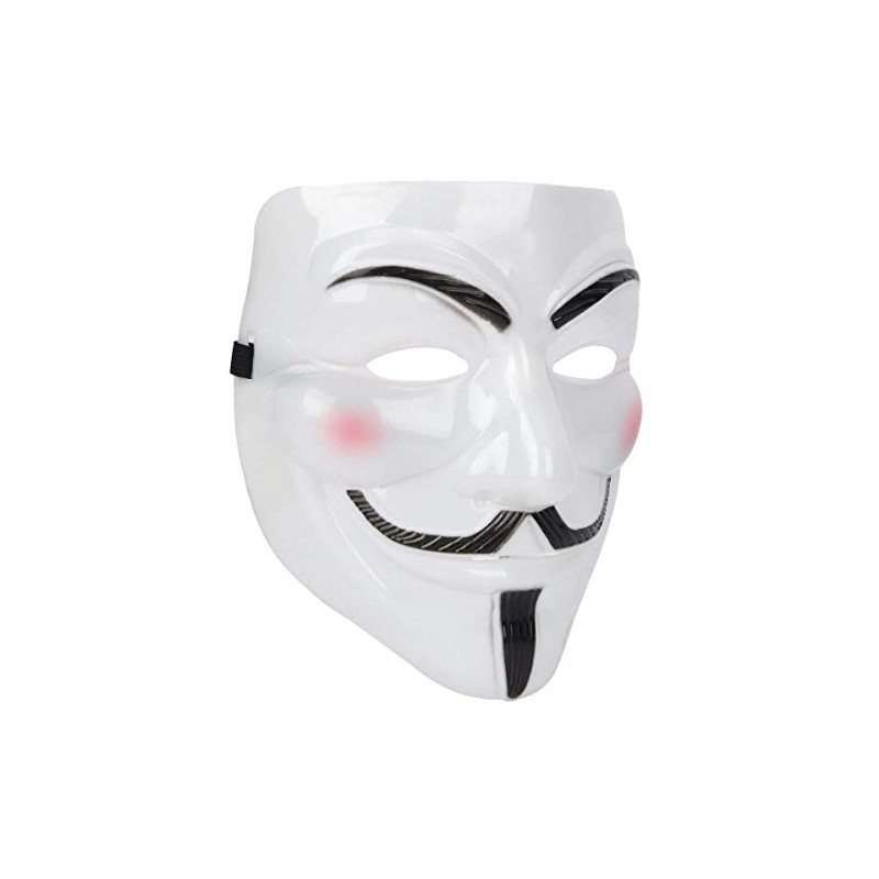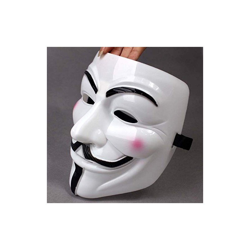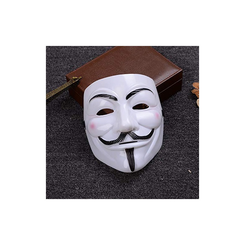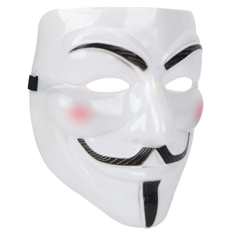 - Stylised "Guy Fawkes" masks, with moustache and pointedbeard.