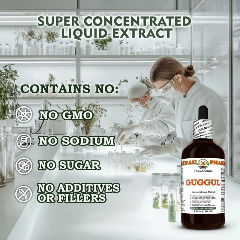 - 100% Natural, Alcohol-Free & Pure: Trust in Hawaii Pharm’s commitment to excellence. Our Guggul Extract is a 100% natural, alcohol-free product, free from additives, colorants, flavorings, and sugars. This ensures you receive the purest form of the herb without any unwanted ingredients. Our rigorous quality control measures guarantee the highest standards of purity and effectiveness, providing you with a product you can trust.