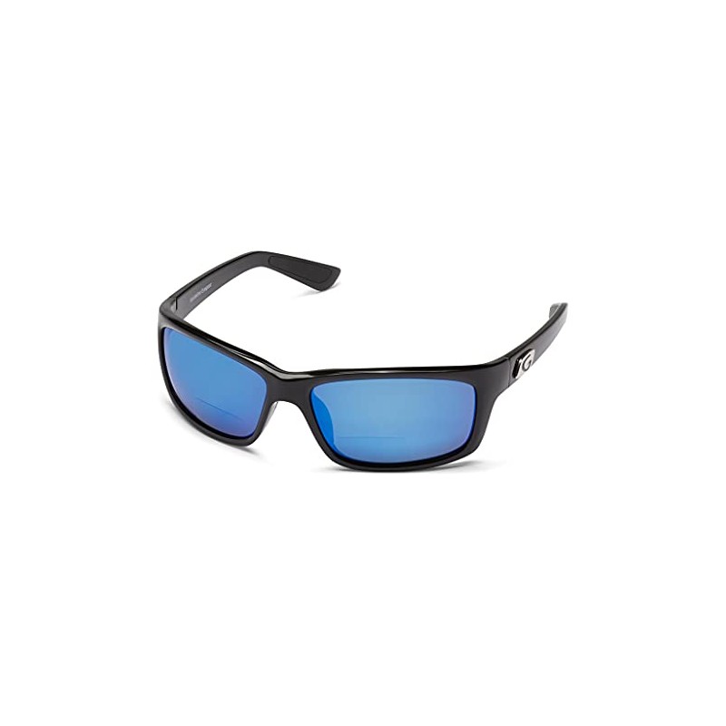Guideline Eyegear Surface Polarized Bifocal Sunglass with Deep Six Blue Mirror/Deepwater Gray Lens, Shiny Black Frame (+1.50), Large
