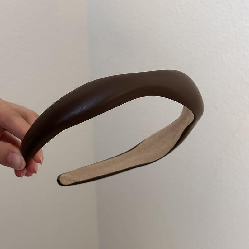 Guiguishiny 3cm Leder Hartes Stirnband Breites PU Gepolstertes Stirnband Retro Style Haarband Mode Bequeme Stirnbänder für Frauen und Mädchen (Beige+Kaffee, ONE SIZE)
