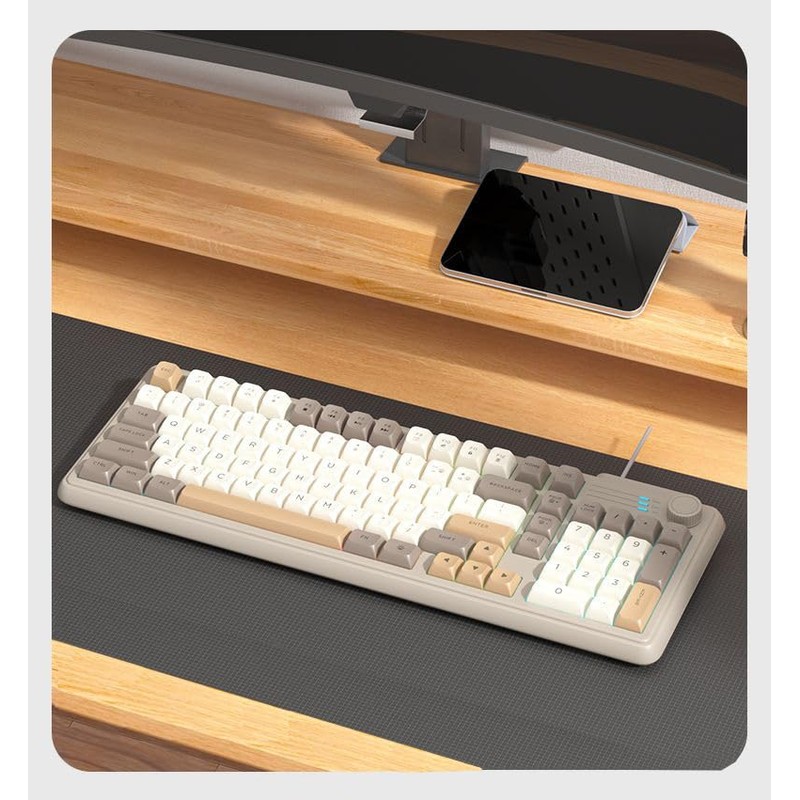 Guiheng Wired Rainbow LED Cute Creamy Gaming Keyboard,Cute Creamy Keyboards with Backlit LED Knob,Number Pad for Office,Gaming-Milk Tea Color