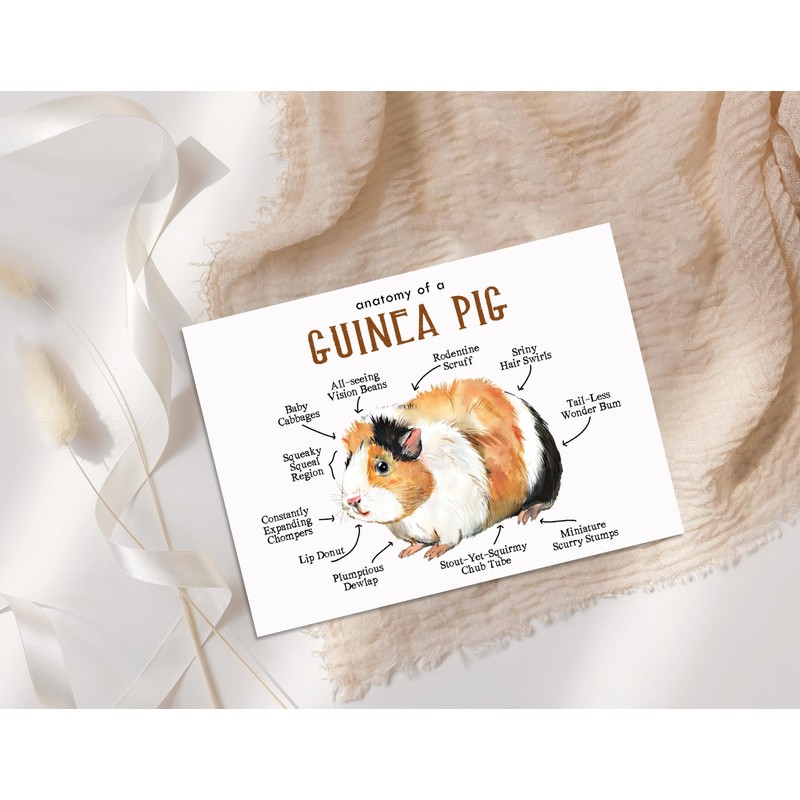 Guinea Pig Card - Anatomy Guinea Pig Card - Unique Greeting Card - Guinea Pig Note Card - Animal Card - Guinea Birthday Card