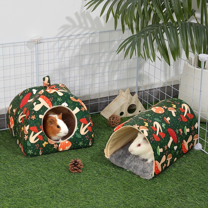 - House and Tunnel Set: Guinea pigs are timid, like a dry and clean place, active at night; This guinea pig accessories are taking into account the living habits of guinea pigs, the house is a hideout to timid guinea pigs, the guinea pig tunnel is for playing and exercising