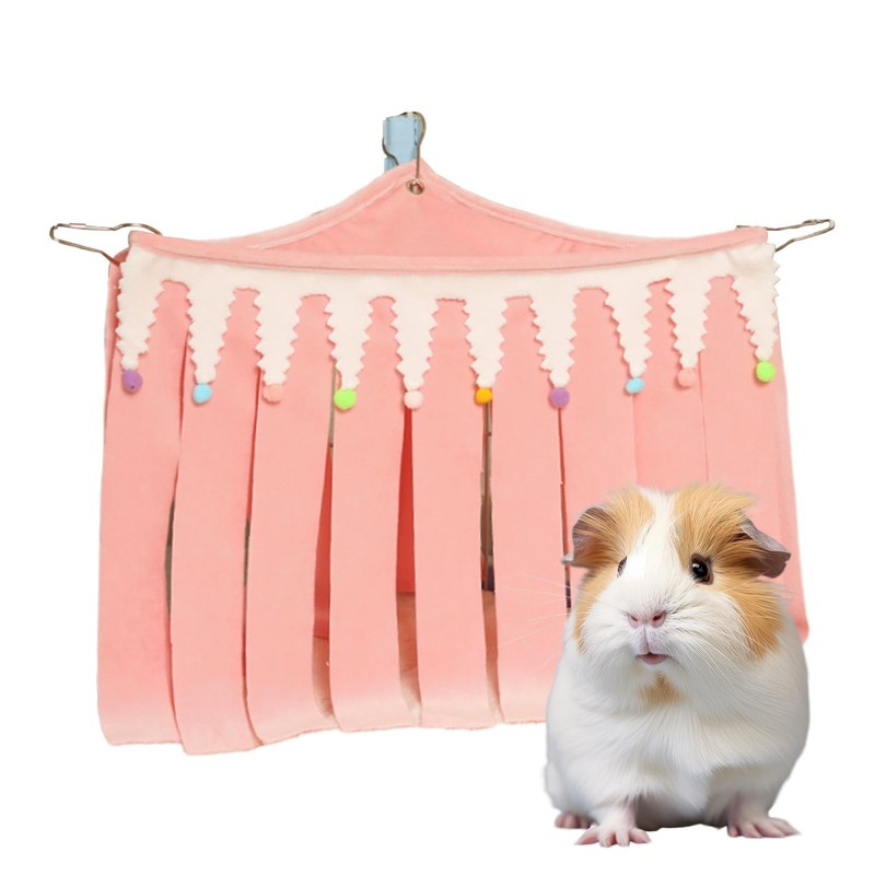 - Crafted from safe, ultra-soft crystal fabric, the Guinea Pig Hideout ensures a plush and snug experience. Measuring 15.8×11.8×11.8in with a length of 10.2 inches, this hideout is ideal for guinea pigs, rabbits, ferrets, chinchillas, hamsters, hedgehogs, dwarf rabbits, and more. Installation is a breeze with the included durable hooks, enhancing your adorable pet's habitat.