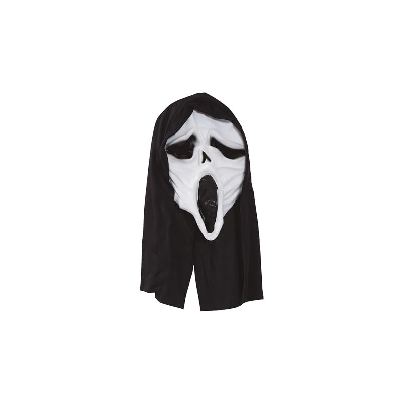Killer Mask with Hood - Ideal for mimicking the style of the Scream Film Saga Assassin Perfect for horror parties like Halloween. Buy costumes, an e-commerce that complies with all US regulations. !