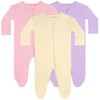 GUISBY Long Sleeve Baby Footed Pajamas with Mittens Cotton Sleepers with Zipper 3-Pack Peach+Purple+Light Champagne 3-6 Months