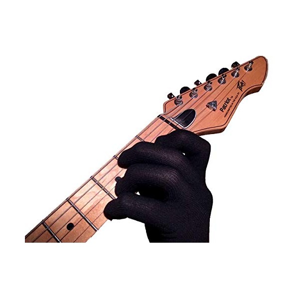 - GUITAR GLOVES FOR FINGERTIPS – for guitar practice and performance. This musician’s practice glove allows you to play through cuts, medical issues, blisters and sore fingertips. Fits either hand. Washable for long life. Slightly wet the fingertips for touchscreen use. Includes 1 glove