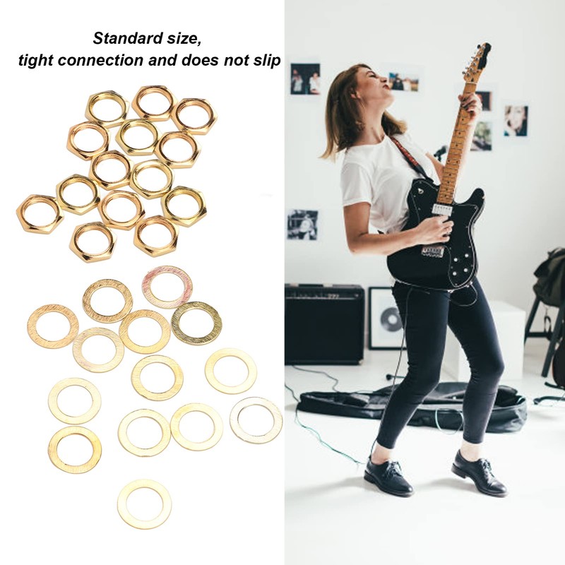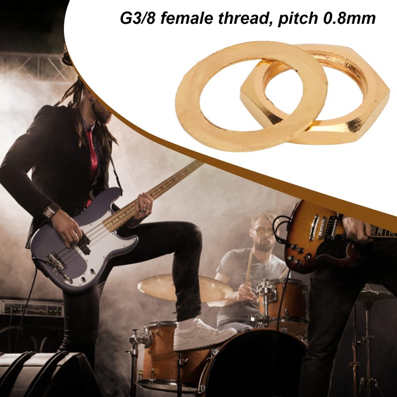 Guitar Nuts and Washers, G3/8 Female Thread Guitar Jack Nut Washer Kit Metal Guitar Input Output Jack Socket Nuts, Jack Socket Nut with Washer for Electric Guitar, Electric Bass