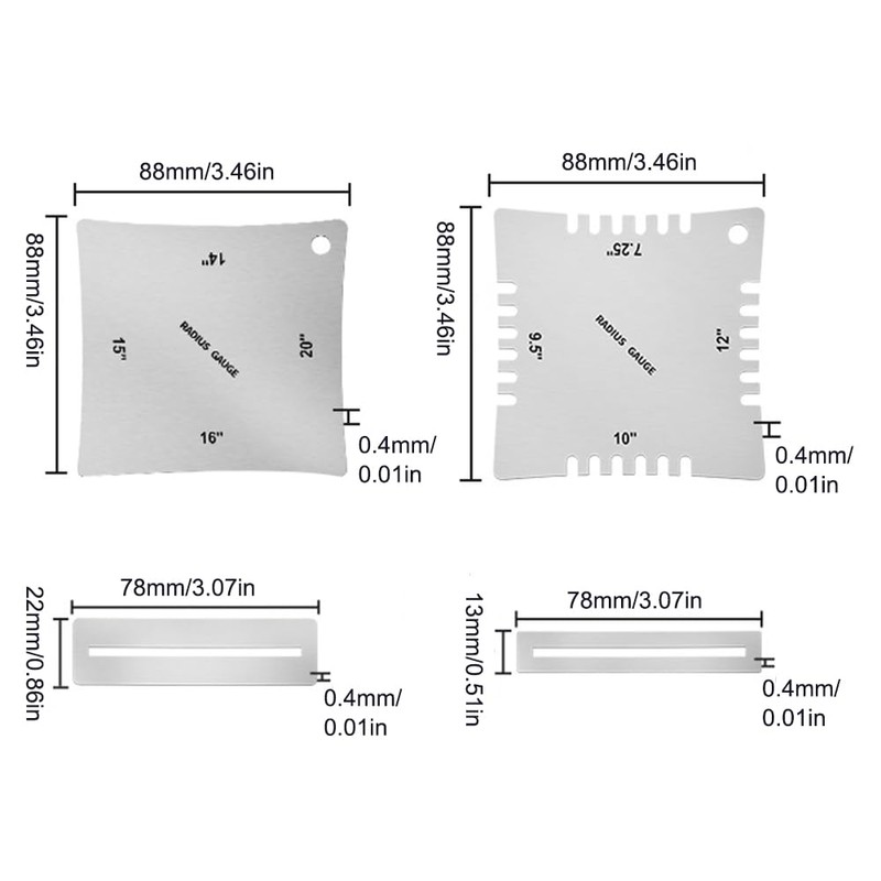 - 【Materia】Guitar radius gauge is made of high quality stainless steel through grinding, colouring, passivation and other treatments, so that the ruler has a metallic luster, three-dimensional sense, rounded corners and smooth surface.