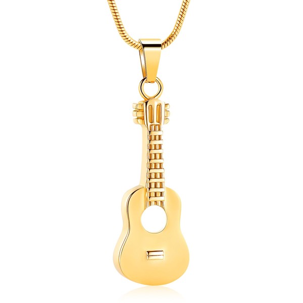 Guitar Urn Necklace for Ashes Cremation Pendants Jewelry Ashes Holder Memorial Urn Necklace Cremation Jewelry for Human with Filling Kits(Gold)