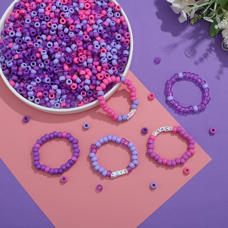 GUJOXILA Pack of 1000 Purple Pony Beads with for Threading Large Hole 6 x 9 mm Kandi Beads Craft Beads Purple Pony Beads Set for Bracelets Necklaces Key Chain Jewellery Making