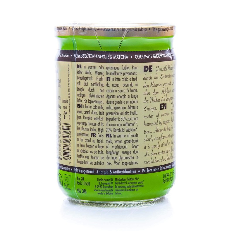 Zutaten: 80% KOKOSBLÜTEN ZUCKER*, 20% MATCHA KOTOBUKI* * = aus kbA