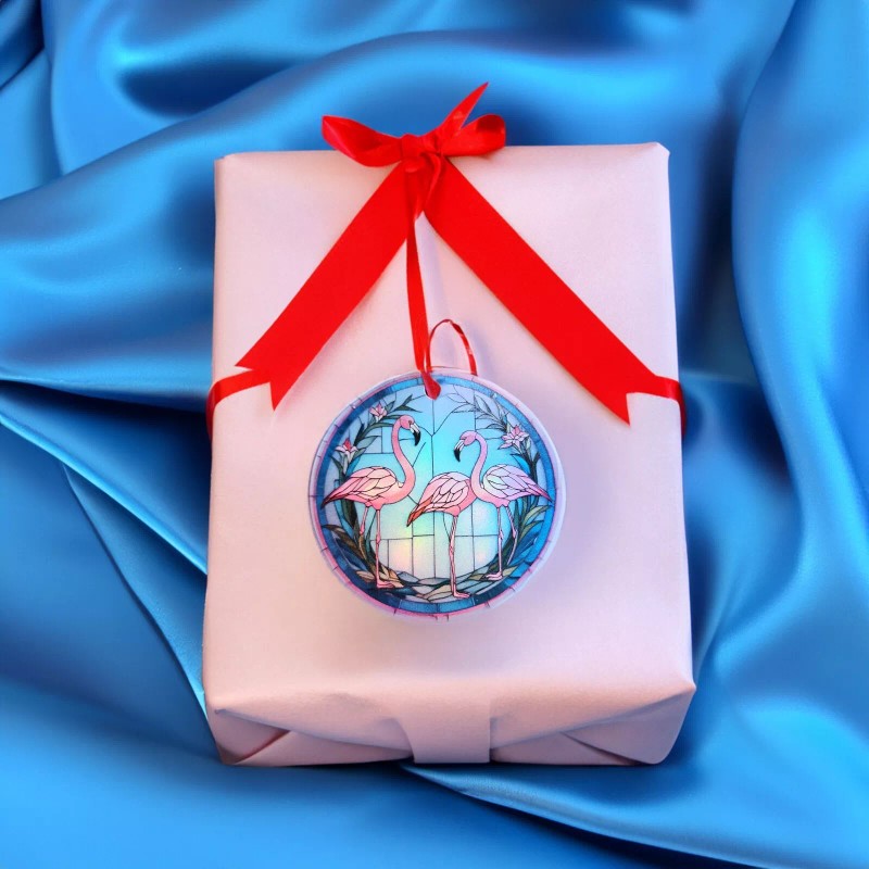You can use the ornament at Christmas for a tree decoration, and keep it on display year round. It makes a great gift for anyone who loves flamingos, and the ornament makes a great display piece.