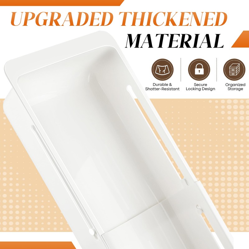 • [Locks Securely in Place] The bin features locking teeth to keep it firmly extended at your desired length, with outer tabs resting securely on top of the drawer frame. No shifting, sliding, or slipping just reliable storage