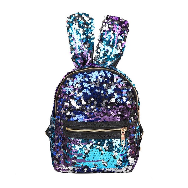 Gulilasa Sequin backpack Shoulder Bag For Women With Cute Rabbit Ears Backpack Sequins Shoulder Bag Travel Day pack (Purple Blue)
