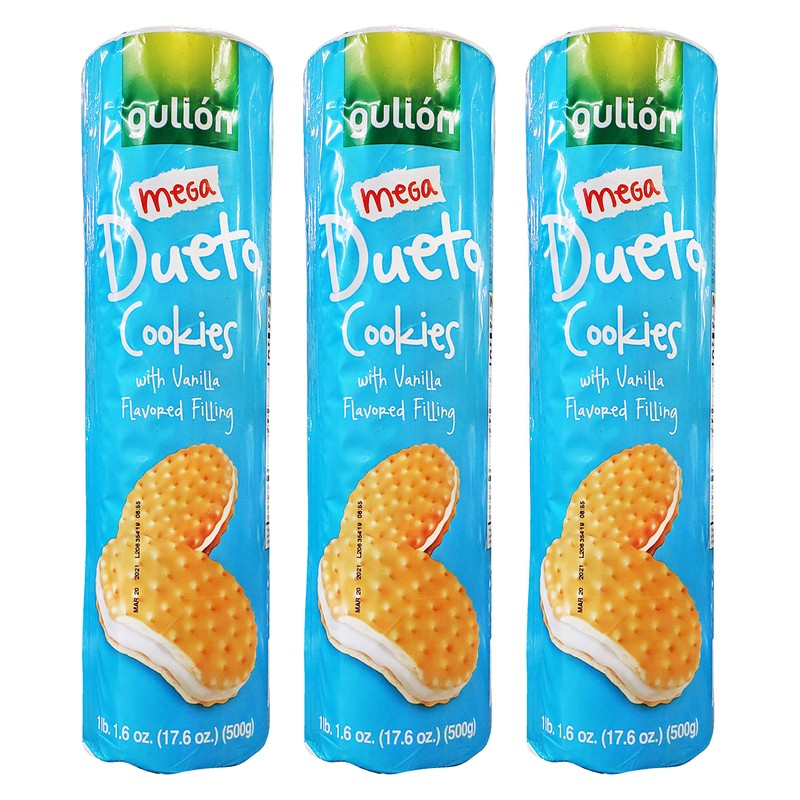 Gullon Mega Dueto Cookies with Vanilla Flavored Filling (3 Pack, Total of 52.8oz)