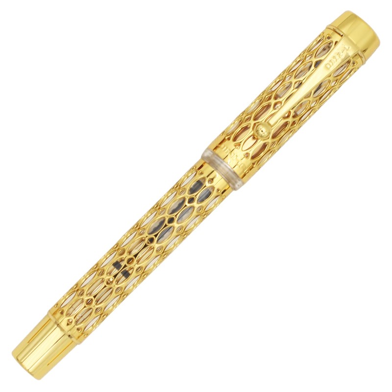 Gullor Openwork Gold Fountain Pen with Gift Box, Screw Cap, Transparent Barrel, Extra Fine Nib