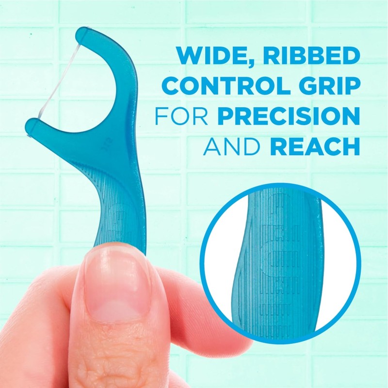 With GUM® Advanced Care flossers, daily flossing has never been easier. Research continues to show the connection between good oral health and overall health. Cleaning between your teeth every day is the most important thing you can do to keep plaque from accumulating in hard-to-reach spaces. GUM® flossers for teeth provide an easy solution to the challenges of daily flossing to make cleaner teeth, healthier gums, and fresher breath accessible to everyone. Each of our flossers features durable, mint flavored dental floss that's coated with vitamin E to soothe and comfort gums and fluoride to strengthen tooth enamel. An ergonomically designed, control grip handle makes it easy to access deep areas of the mouth, and a fine tipped dental pick on the opposite end is perfect for precision removal of plaque and food particles. What sets Advanced Care flossers apart? - Silky GUM® dental floss sticks that's coated with Vitamin E & Fluoride - Wide, ribbed control grip handle for enhanced precision and reach - Refreshing mint flavor - Dental pick for easy removal of food particles & plaque - Compact design that's perfect for travel and on-the-go teeth cleaning