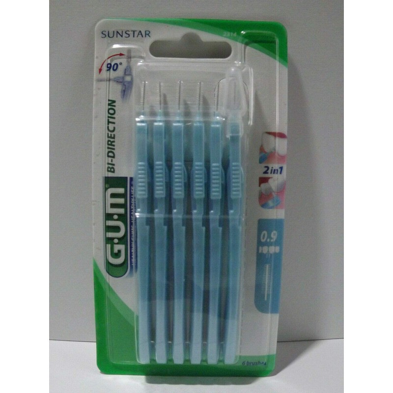 GUM BI-DIRECTION Interdentalbürsten 6 Stück hellblau 0,9mm, 3er Vorteilspack (3x 6 Stück)
