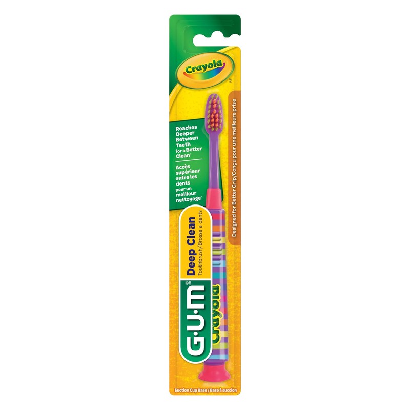 - FUN & EFFECTIVE: GUM Crayola Deep Clean Kids’ Toothbrushes feature 4 bright colors that make brushing fun while effectively removing plaque from between the teeth and below the gum line.