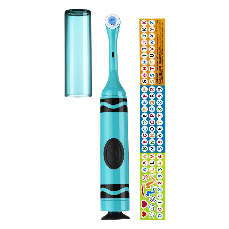 GUM Crayola Power Toothbrush for Kids, Extra Soft Bristled Toddler Toothbrushes, Travel Cap + Suction Cup Base, Batteries Included, 1ct