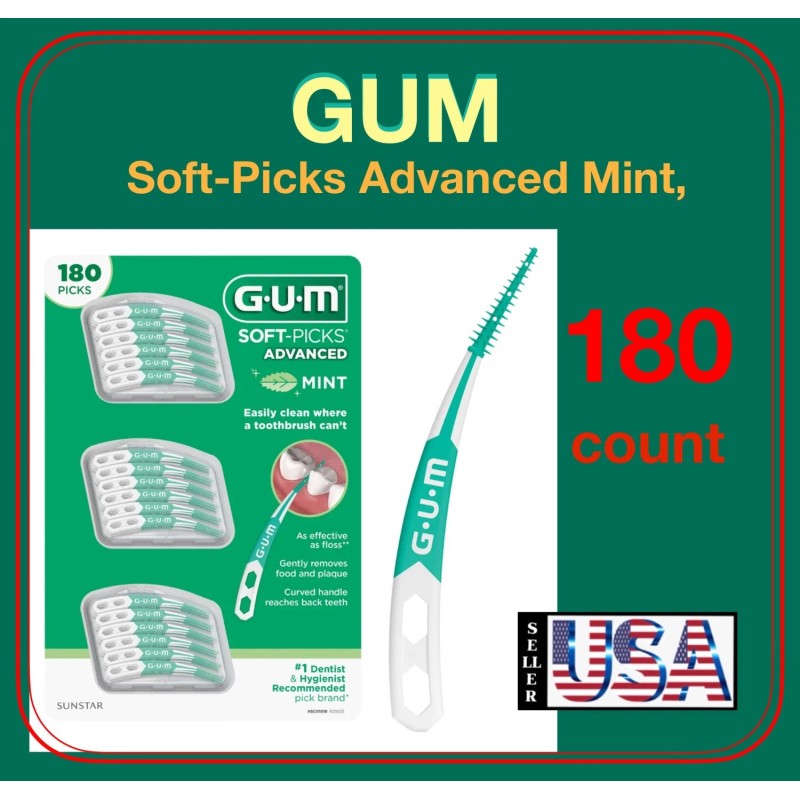Gum Soft-Picks Advanced Mint, Dental Care Floss, Tooth Picks, 180 Picks