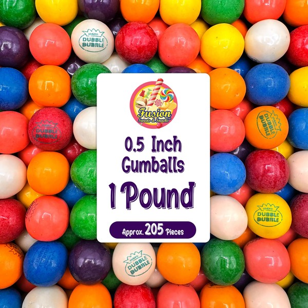 Gumballs Bulk 1/2inch 1 Pound Bag - Gumballs For Gumball Machine - Gumball Machine Refills - Assorted Fruit Flavor - Bubble Gum