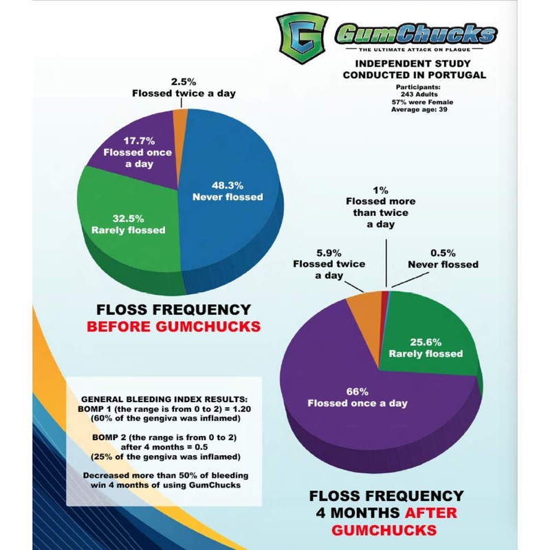 - TESTED & APPROVED | A study conducted by the UCLA School of Dentistry determined that children ages 4-9 using GumChucks were more effective at removing plaque in less time than children ages 10-15 using regular floss