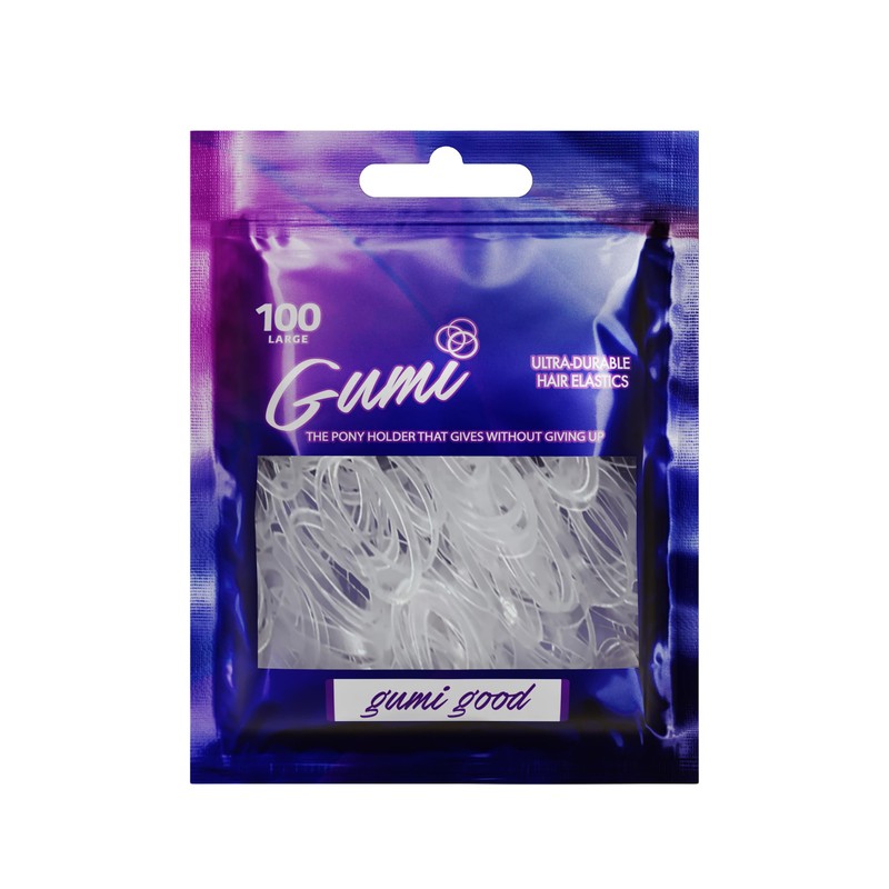 - GOODER THAN GOOD... IT'S GUMI: Gumi clear small elastic hair bands, large elastic hair bands, the epitome of quality and style. Elevate your hair game with these superior bands.