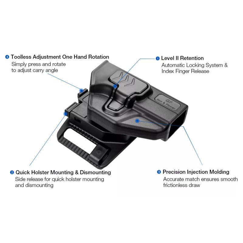 Gun&Flower OWB Holster Fit Glock 43 Glock 43x, 360 Degrees Adjustable Belt Clip Level II