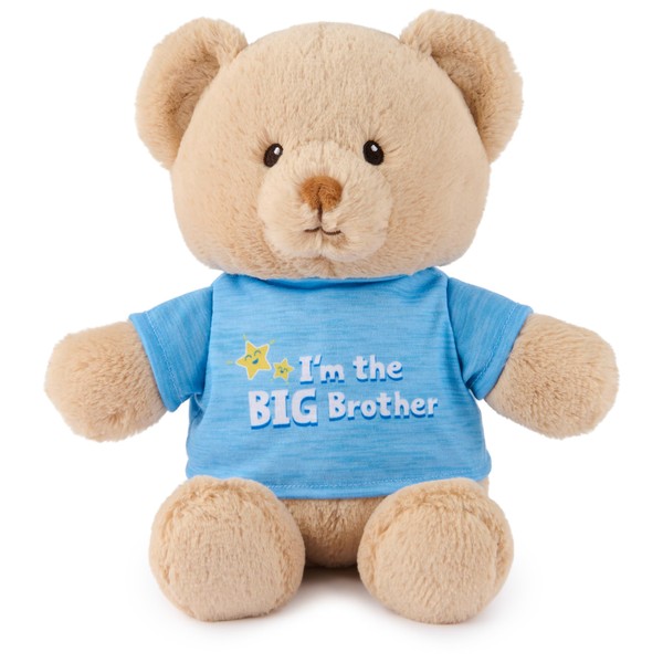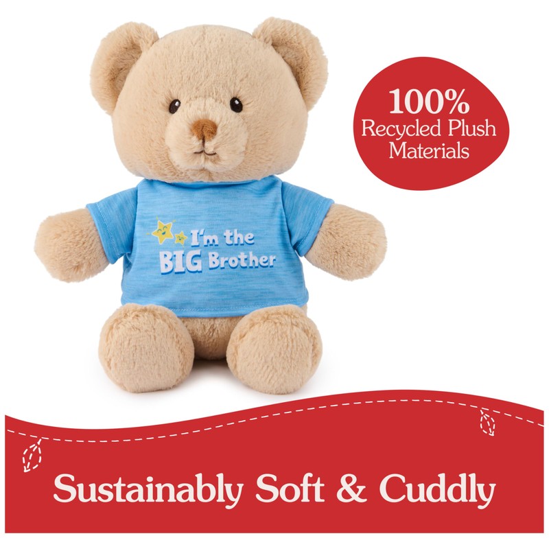 GUND “I'm The Big Brother” Sustainable Message Bear with Blue T-Shirt, Teddy Bear Made from 100% Recycled Materials for Ages 1 and Up, Tan, 12”