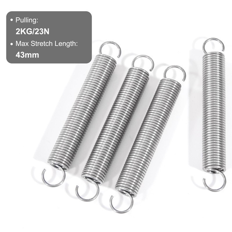 • STRONG AND ECO FRIENDLY Tension spring is made of Japan imported 304 stainless steel and complies with RoHS certification, rust and corrosion resistant, high strength and elasticity, long service life.