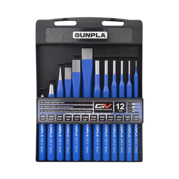 Gunpla 12pcs Chisels and Punches Set, High Quality Durable Chrome Vanadium Steel Split Punch 1.5-16mm – Removing Chiseling Inserting Silting Rusty Nuts Center Punching Tools