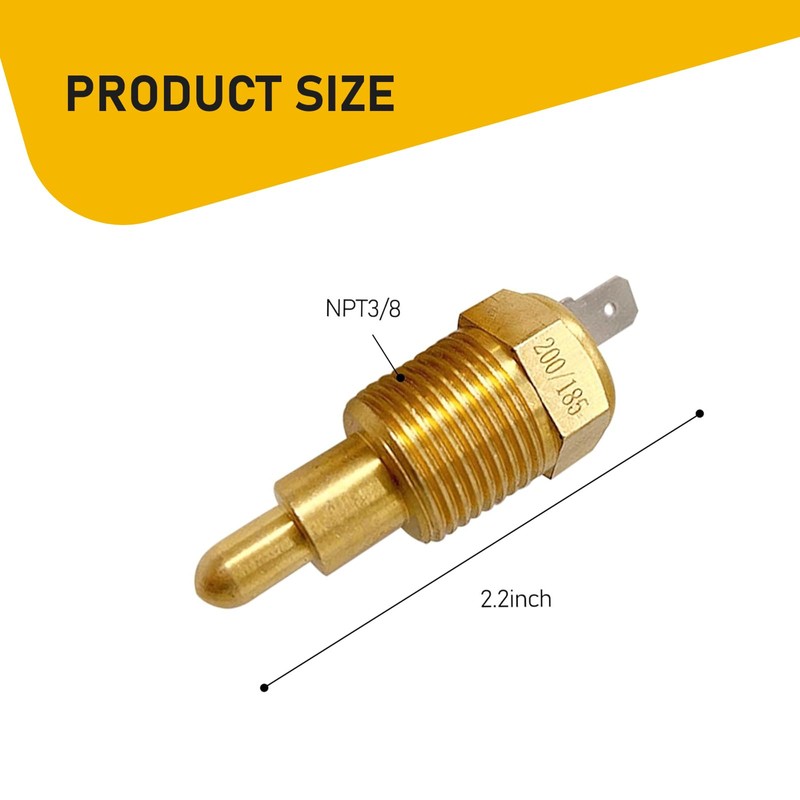 gunroil 1 Pack Car Engine Sensor Switch with 3/8In Pipe Thread, 200 to 185 Degrees Vehicle Cooling Fan Thermostat Control Accessories for 10In 12In 14In 16In Fan, Universal for Most Cars (Gold)